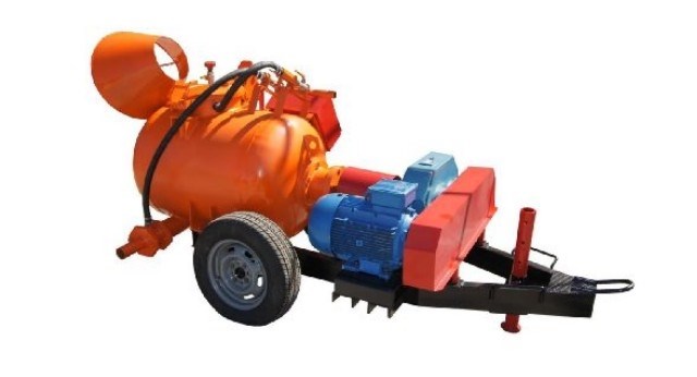 Резервуар, объемом в 0,3 кубических метра, оснащен валом с прочными лопастями и подгребающими лопатками, рабочим приводом и уплотнительным устройством. Шкаф управления, который для удобства установлен на раме, приводит в работу бетононасос, и в резервуаре происходит приготовление или перемешивание строительного раствора.