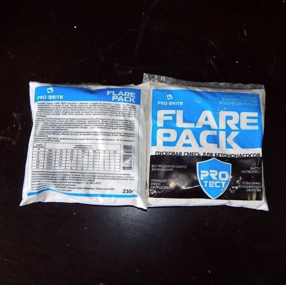 Пусковая смесь Flare Pak - препарат смазки трассы бетоновода: трубы бетоновода, углы (колено) бетоновода (отводы).