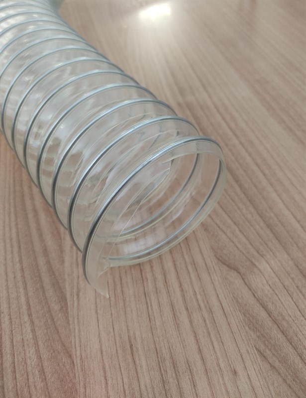 Конструкция: стенка из термопластичного прозрачного полиуретана, соответствующей толщины. Каркас из оцинкованной, высокоуглеродистой стальной проволоки. Внешняя поверхность шланга ребристая, внутренняя- волнистая.