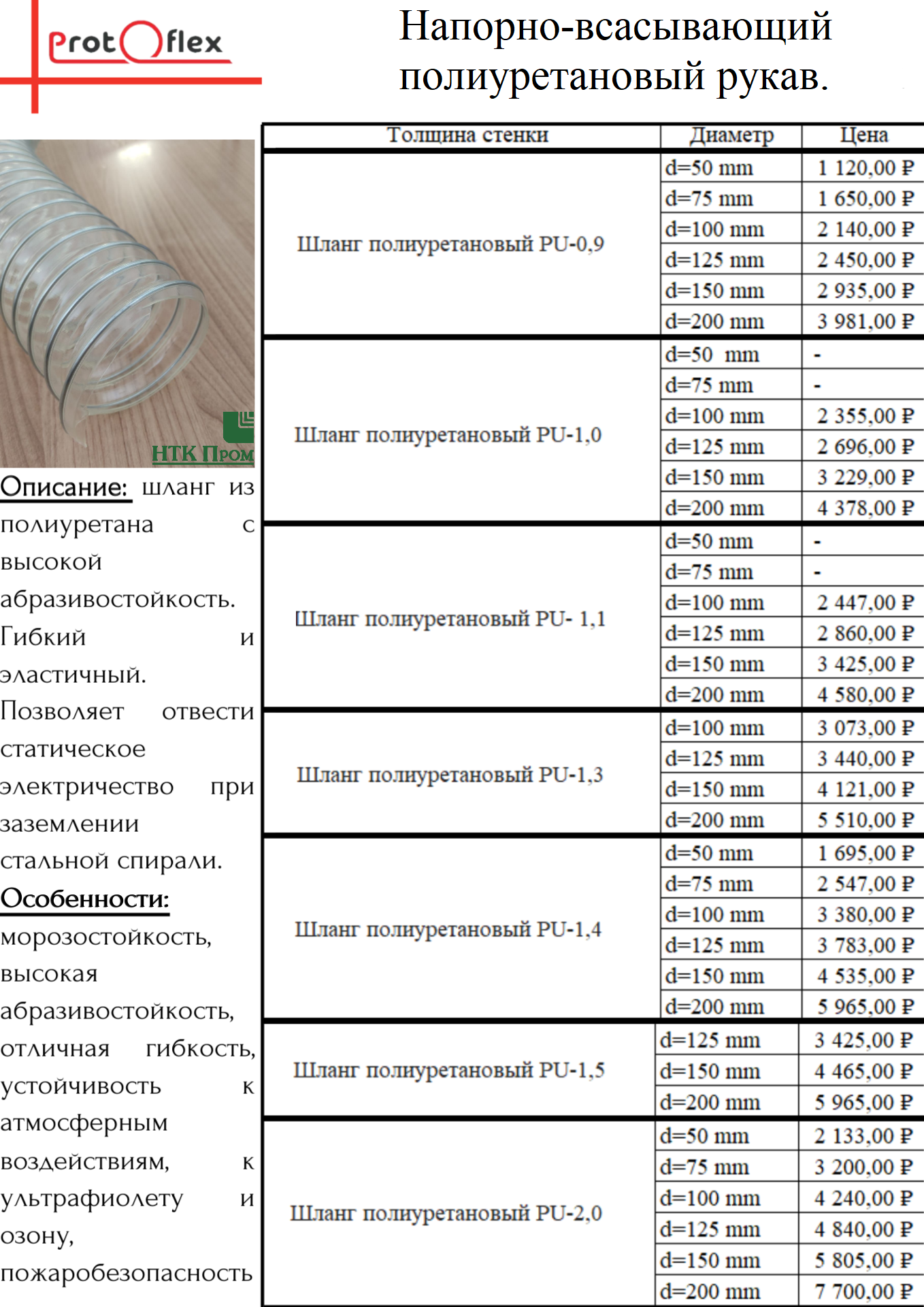 Описание: шланг из полиуретана с высокой абразивостойкостью. Гибкий и эластичный. Позволяет отвести статическое электричество при заземлении стальной спирали.